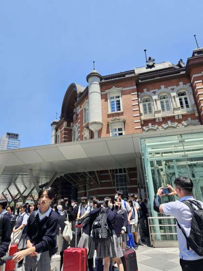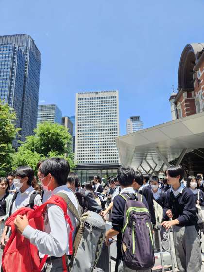東京に着きました!高いビルに生徒たちは圧倒されています。