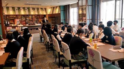 ベルボーイ・ベルガール、ハウスキーパー、接客、ホテルツアーと4つに別れての研修です。