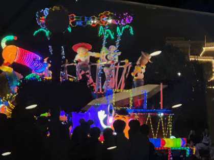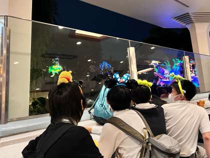 昼間のパレードとは一味違う、夜のパレードをみんな味わっています。