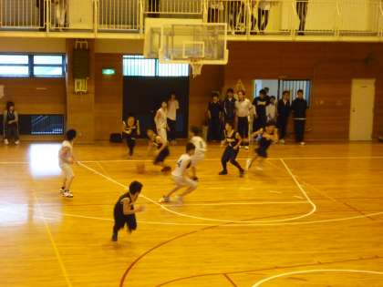 強豪大枝中学校との対戦でした。一生懸命、自分たちのバスケットをしていたのですが、残念ながら、大差をつけられてしまいました。