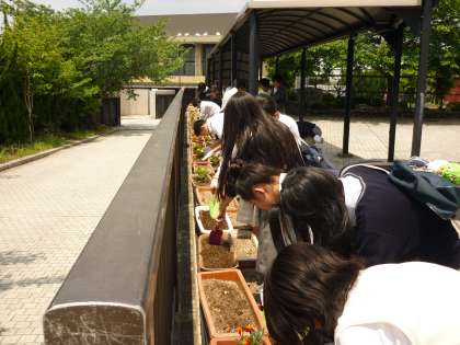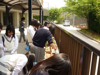 前回は途中から雨が降り出し中止しました。今回は天気も良く絶好の植え替え日になりました。テスト明けということもあり、疲れている生徒もいましたが全員積極的に作業をしてくれました。