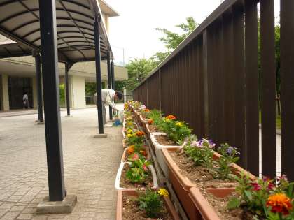 本日の放課後に美化委員会を中心に花の植え替えの続きを行いました。