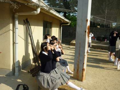7時集合の時には1年生18人、2年生16人、3年生9人の計43名がそろい、学校から渡した「日食めがね」を着用して7時30分の金環日食の観察をしました。生徒に渡したレポートの感想を見ると生徒が自然現象の素晴らしさに感動したことがわかります。朝早くからの「日食観察会」でしたが実施して良かったと思います。非常にいい経験ができました。