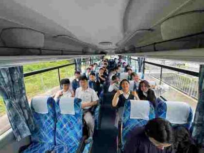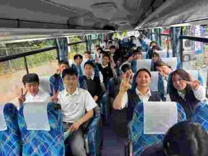 バスに乗って、京都駅へ向かっています。楽しそうです。