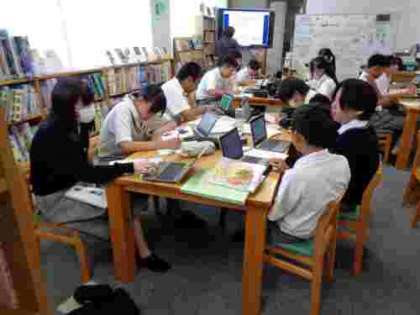 2年生の家庭科の授業にて、「これぞ京都の給食レシピ」を題材として、図書館を利用して調べ学習を行いました。