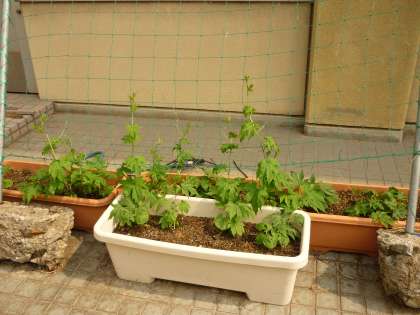 美術室前の緑のカーテンが少しずつ成長をしています。