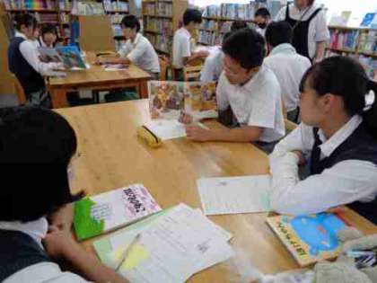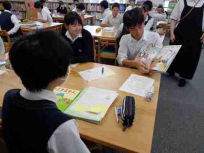 生徒たちは好きな本を選び、班のメンバー同士で一生懸命読み聞かせをしていました。