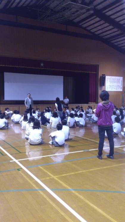学年道徳ということで体育館で、「挨拶できなきゃ留年」というテーマで行いました。