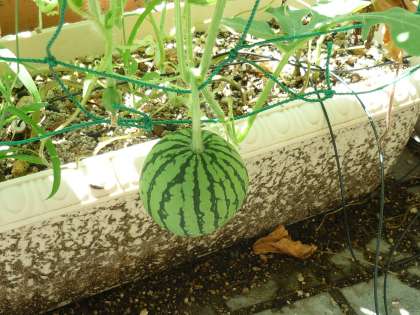 校内を歩いていると中庭にある育成学級の生徒が育てている農園で片隅に小さなボールを発見しました。よく見ると何と「スイカ」でした。愛らしい「スイカ」に暑さを忘れて見入ってしまいました。校舎内の多目的ホールでは、吹奏楽部の練習が熱を帯びています。それもそのはず、8月4日(土)にコンクールを控えているからです。気持ちを一つにして、目指せ金賞!!