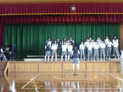 リハーサルは、2時間目に1年生 3時間目に3年生 4時間目に2年生の順に実施しました。写真は、3年生の様子です。3年生は、各クラス24名〜25名ですが、男声、女声(アルト・ソプラノ)の3パートに分かれ、ハーモニーを響かせます。