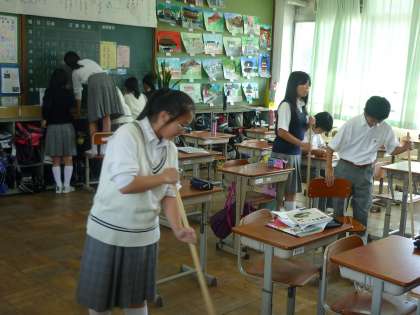 気持ちよい秋晴れです。昼休みに校内を歩いていると、掃除をしている生徒がいました。今日は、昼清掃の日です。昨日は、「大宅レンジャーそうじし隊」で校舎内がきれいになりましたが、日頃の掃除も大切です。校舎をみんなの力できれいにしたいですね。美しい環境が充実した学校生活の土台です。