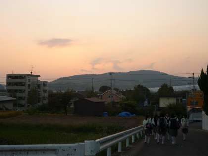 「秋は夕暮れ。」清少納言は「枕草子」の中で、秋は夕暮れがいいと書いています。まさに今日の夕暮れは、清少納言の言葉どおり大変きれいです。また、「秋の日はつるべ落とし」とも言います。秋は、日暮れが早くなり、すぐに暗くなります。