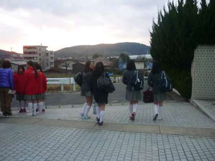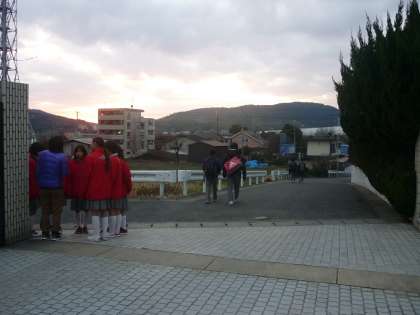 写真は、本日の部活動終了後の完全下校の様子です。冬至の頃とくらべると日暮れに時間が遅くなっているのがわかります。