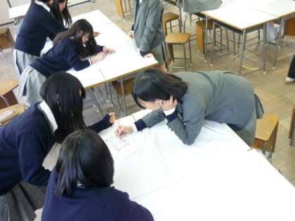 放課後の時間を利用して、3年生は学級旗制作にとりかかりました。クラスで選んだ下絵をもとに完成させていきます。修学旅行にも持って行く予定になっています。どんな学級旗ができあがるか楽しみです。