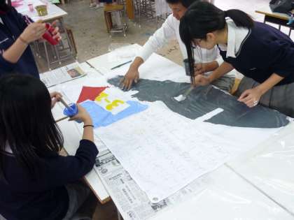 昨日も紹介しましたが、3年生の学級旗制作が続いています。下絵が完成し、色つけに進んでいるクラスもあります。絵の具で服装を汚さないように注意してください。