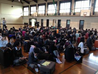 さわやかな快晴の下、修学旅行に出発します。実りある、思い出に残る修学旅行になるように願っています。