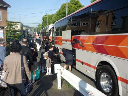 午前6時15分に学校に集合して、学校長のあいさつや添乗員さん、写真屋さんの紹介がありました。その後、バスで京都駅に向かいました。