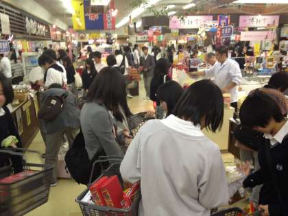 北九州市内の企業や大学の訪問を終えて、宿舎に向かっています。その途中で、休憩を兼ねて「観光センター博多」に立ち寄りました。お土産を買っている生徒もいます。気に入るお土産は見つかったかな。