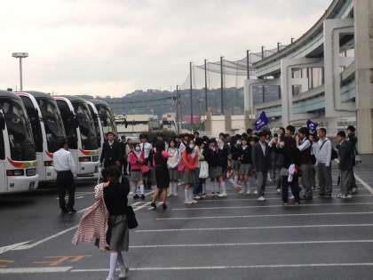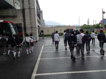 スペースワールド到着の写真が届きました。雨は小やみみたいです。2:00の集合まで思い切り楽しんでください。