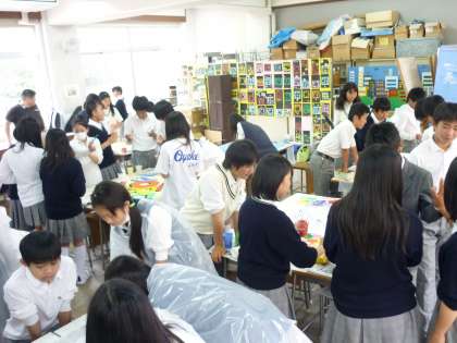 1・2年生が、制作を続けている学級旗が完成間近になってきました。それぞれのクラス特徴ある学級旗になっています。完成後は、教室に掲示します。また学校行事などでは、学級旗の下、クラスが団結してください。