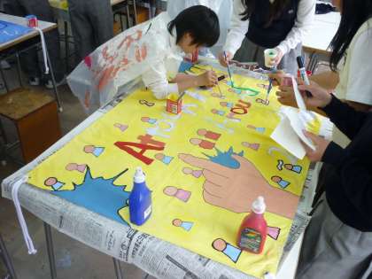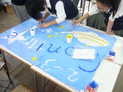 1・2年生 学級旗完成間近