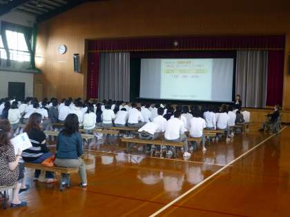 6時間目に公立の鳥羽高校と私立の京都学園高校から先生をお招きして、公立高校と私立高校の特色や学校生活、入試制度などを説明していただきました。3年生だけでなく1,2年生の保護者も多数来校されました。
