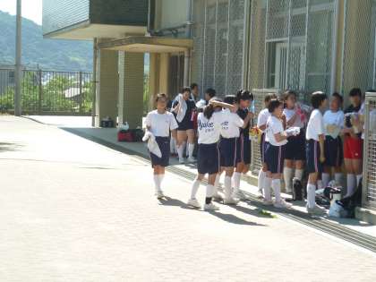クラブ活動をしている生徒も汗だくです。熱中病予防のために水分補給もこまめに行っています。