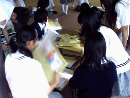 本校は,以前から小学校への読み聞かせに出向いている。期末テストが終わった7月1日,12日の読み聞かせに向けて,臨時の図書委員会が開かれた。どんな様子か参加してみた。図書委員と有志が集まった。図書委員長が3人組と2人組とのグループをつくるように説明をすると,すぐにグループは出来上がったが,3人組が多すぎて,解体して2人組に組み直すように説明すると,また,すぐに2人組が出来上がるのである。感心して見ていた。通常なら,誰と組むかで大きな時間をかけるのだが,大きなことにもならず,次の段階,読み聞かせの作品選びに入っていった。