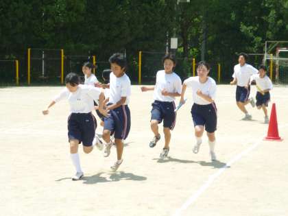 さて、今日は6月19日(水)に予定していましたが雨天で21日(金)に順延され、21日(金)も雨天で中止になった陸上競技記録会を学年別で行いました。4時間目に2年生、6時間目に3年生を実施しました。真夏の太陽が照りつける中、大粒の汗を流して競技していました。