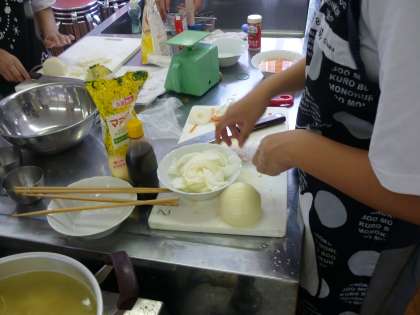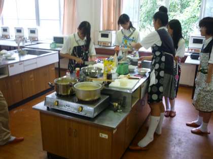 そんな暑い中、家庭科部は調理実習を行いました。大粒の汗を流しながら食材を調理し、おいしそうなスパゲッティーが完成しました。できあがったスパゲッティーは、先生方にもふるまわれ、「うまい」という声が職員室に響いていました。