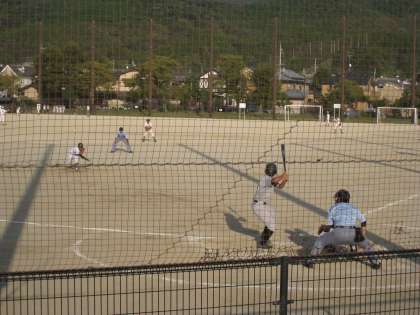 ※初回に1点を先制され、終盤6回にも追加点と苦戦しましたが、6回裏に同点に追いつきました。その後、延長戦になり8回表に2点をとられ悔しい敗戦になりました。合同チームですが、声もよく出ていてチームワークもよかったです。ここまでの健闘に拍手を送ります。