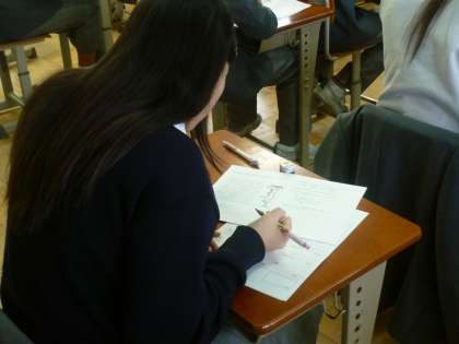 今日から1、2年生の期末テストが始まりました。教科は、英語・音楽・美術の順で行われます。2期しめくくりのテストです。悔いを残さないように最後まで集中して解答してください。3年生は明日からテストです。