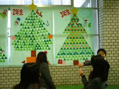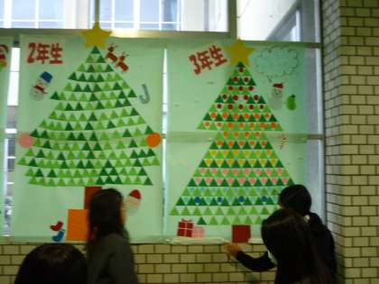 今年も残すところ半月になりました。文化委員会では、季節の掲示物としてクリスマスツリーを制作してくれました。クリスマスツリーを飾るのは、教職員や生徒の「今年感動したこと」です。今年もいろいろなことで感動があったことがわかります。学校にお越しの節はぜひご覧ください。