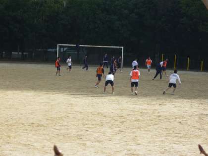 グランドでは、寒さに負けず3年生の男子が、体育の授業でサッカーをしています。元気な声が響いています。3年生はどうしても運動不足になりがちです。体育の授業などで汗をかくくらい身体を動かしてください。そして風邪に負けない強い体力を養ってください。