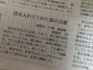 土曜日の新聞の投書欄に「活を入れてくれた弟の言葉」が掲載されていた。女子高生の投書である。内容は次のようなものである。
