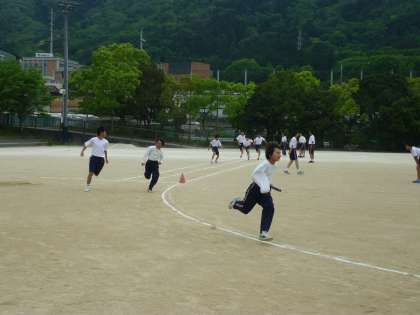 体育の授業は、陸上競技を行っています。トラック競技や走り幅跳びや走り高跳びのフィールド競技で生徒は、自己記録更新を目指して汗を流しています。懸命に取り組む姿には好感が持てます。6月13日(金)には、陸上競技記録会が予定されています。陸上競技記録会を目標に練習を続けてください。