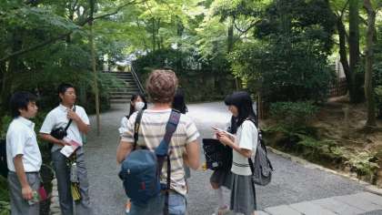 趣ある石庭で有名な龍安寺を訪れている班もあります。落ち着いた雰囲気でインタビューができているようです。