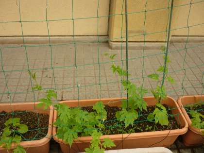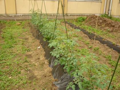 緑のカーテンが順調に育成中です。作物にとって梅雨の時期の雨は、まさに天の恵みです。すくすく育ってくれることを願っています。緑のカーテンの隣では、1年生の技術の事業で育てているミニトマトも順調です。収穫が楽しみです。