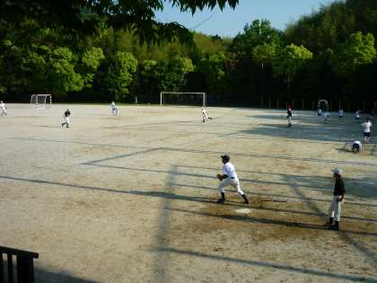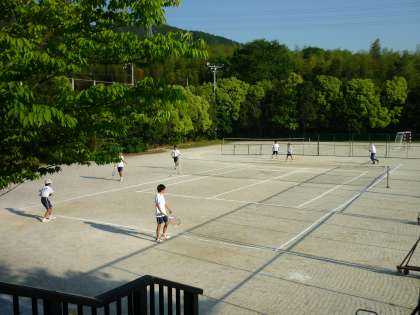 放課後は、部活動が活発です。グラウンドでは、野球部が守備練習できびきびした動きをしていました。ソフトテニス部は、部員が懸命にボールを追いかけていました。部員にまじってALTの先生も練習していました。