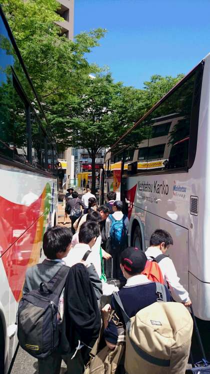 小倉駅前からバスに乗り、出発です。天気は、雲ひとつない快晴です。青空が広がっています。それにしても2時間30分で小倉に着けるのです。まさに新幹線は「魔法の杖」です。改めて思います。