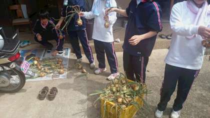玉ねぎを収穫してきて、仕分けをしています。