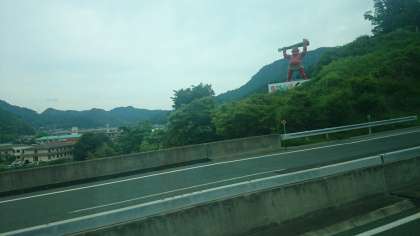 大分県安心院から大刀洗の平和祈念館への移動中の写真が届きました。途中、大分県の玖珠町を通りましたが、玖珠町は童話の里であることから桃太郎など童話の主人公のモニュメントが多数ありました。