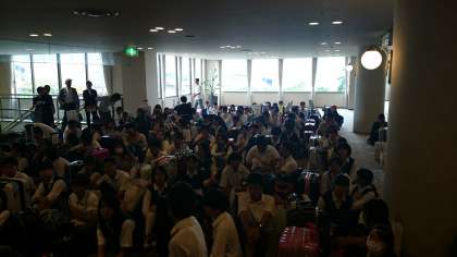ホテル内で買い物の時間をとりました。おみやげを買っている生徒も多くいました。その後、ホテルのロビーに集合してスペースワールドへ出発します。スペースワールドは、ホテルのすぐ隣です。雨は、強くなっていないそうです。