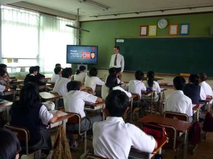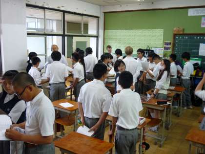 2年生の英語表現科の授業は、明日の校外学習で行う外国人へのインタビュー活動に向けての練習をしていました。本校の校区でホームステイされているノルウェーからの留学生にもお越しいただいて生徒からの質問を受けてもらいました。今日の練習を活かして明日のインタビュー活動が成功することを願っています。