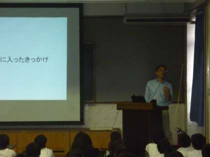 6時間目の1年生の総合の時間は、講師の先生を招いて、11月に行われる「ファイナンスパーク学習」に向けて「働く」ことをテーマにお話ししていただきました。講師の先生は、冒険家で北極を冒険されました。その時のことをスライドを使ってわかりやすく説明されました。生徒の皆さんも将来の生き方をイメージしていってください。