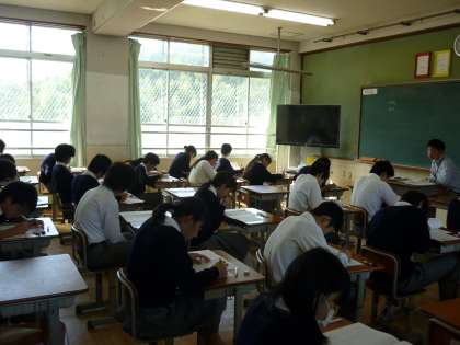 今日と明日、2・3年生は学習確認プログラムを実施しています。教室内は、鉛筆を走らせる音だけが響き、生徒は集中して問題に取り組んでいました。学習確認プログラムは、学習内容が理解できているかを見るテストです。返却された後、点数だけに一喜一憂するのではなく、どこができて、どこができていなかったかを確認して、できていなかったところを重点的に復習してください。