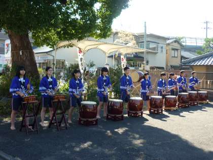 今日は、岩屋神社の秋祭です。早朝から神輿が地域を巡ります。学校近くの御旅所で生徒会本部役員が岩屋太鼓を奉納しました。神輿も到着してたいへん盛り上がっていました。見学されていた方々から大きな拍手をいただきました。ありがとうございます。