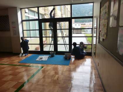 本日は玄関・中庭と東側の窓ガラス・ドアガラスを