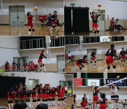 バレーボール部の試合の様子です。よく粘り、よくひろい、力強いスパイクやブロック,チームの実力をしっかりと出していました。