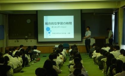 5月19日(金)の6限に1年生が総合的な学習の時間についてのオリエンテーションを行いました。大宅中学校では,「キャリア教育」を総合のテーマとしています。まず今回は,自分の興味のある職業が,中学校で学習する教科とどんな関係があるか考えることから始めました。今日がスタートです。これからの総合学習の中で,よりよく課題を解決し,自己の生き方を考えていく力を身につけていきましょう。